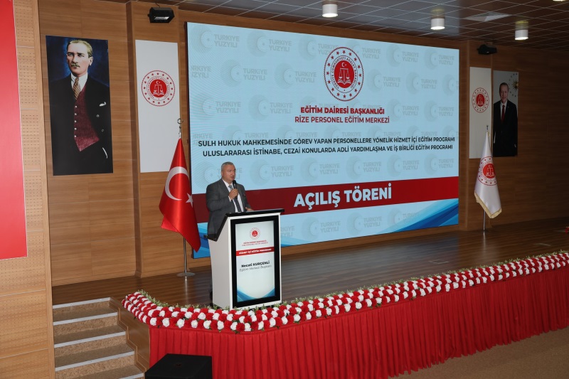 Eğitim Dairesi Başkanlığınca Düzenlenen, 2025 Yılı 11. Grup Uluslararası İstinabe ve Cezai Konularda Adli Yardımlaşma ve İşbirliği ile 5. Grup Sulh Hukuk Mahkemesinde Görev Yapan Personellere Yönelik Hizmet İçi Eğitim Programları Açılış Töreni 01.12.2025 Tarihinde Rize Personel Eğitim Merkezinde Gerçekleştirildi.