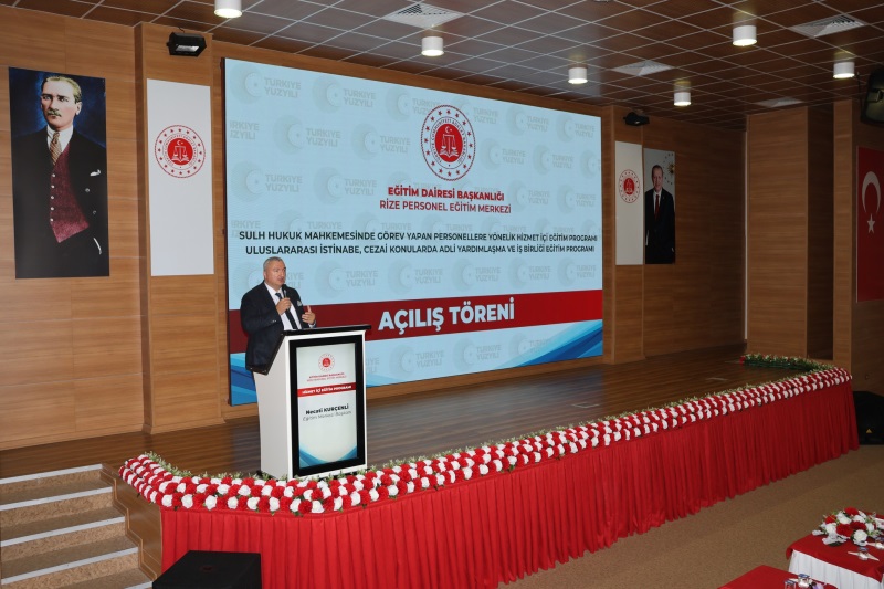 Eğitim Dairesi Başkanlığınca Düzenlenen, 2025 Yılı 12. Grup Uluslararası İstinabe ve Cezai Konularda Adli Yardımlaşma ve İşbirliği ile 6. Grup Sulh Hukuk Mahkemesinde Görev Yapan Personellere Yönelik Hizmet İçi Eğitim Programları Açılış Töreni, 01.12.2025 Tarihinde Rize Personel Eğitim Merkezinde Gerçekleştirildi.