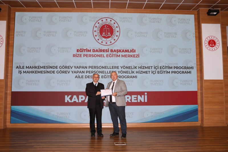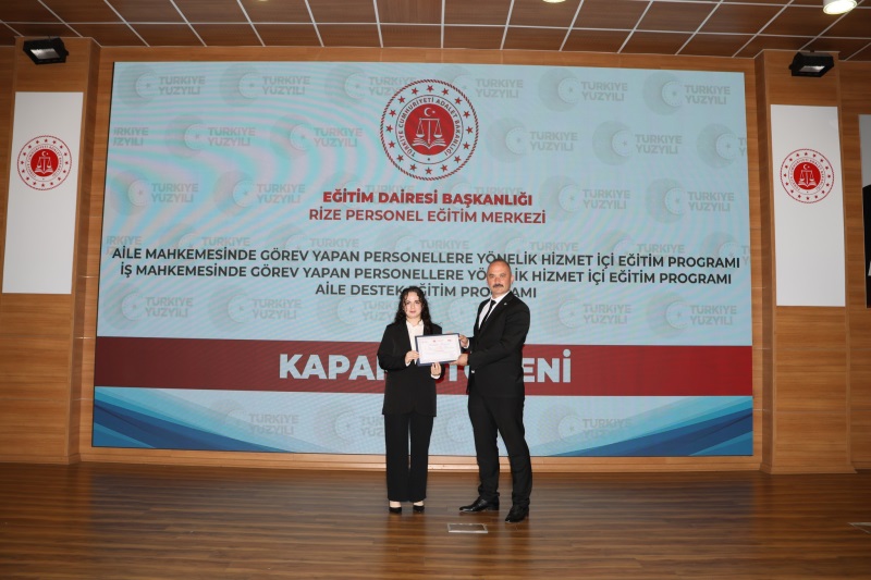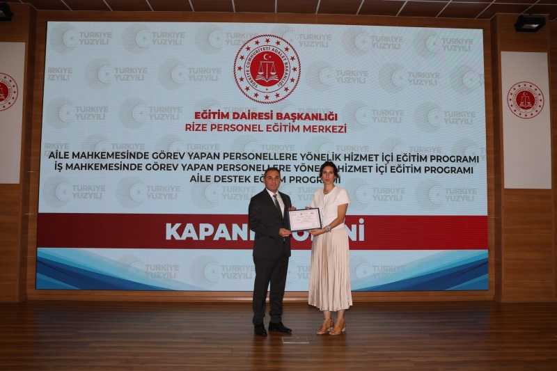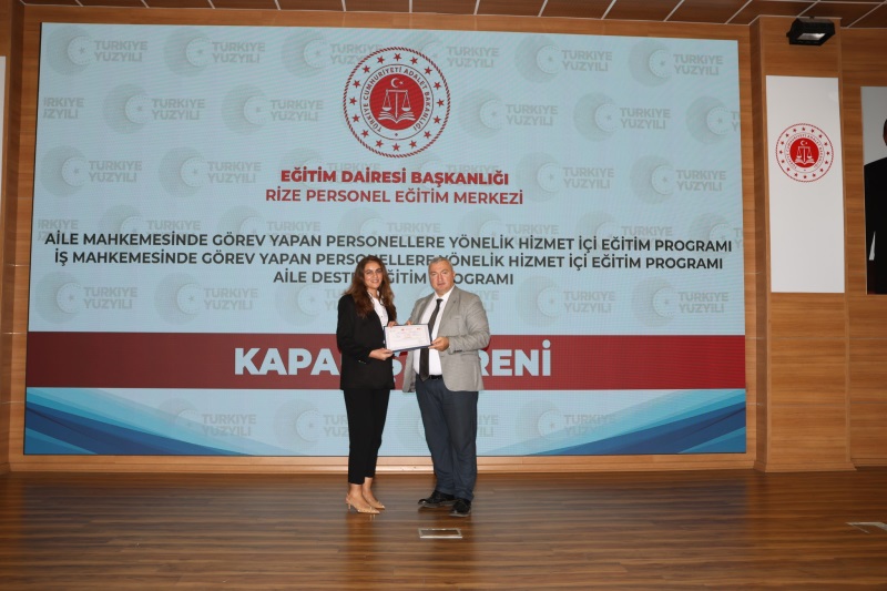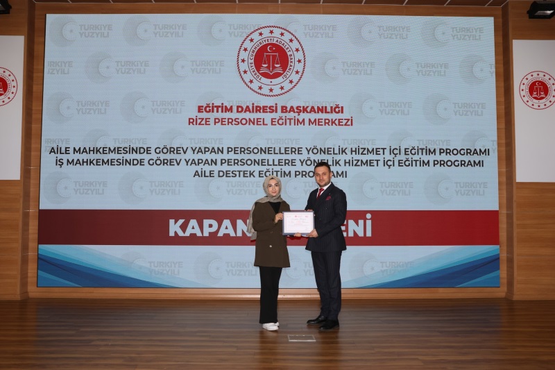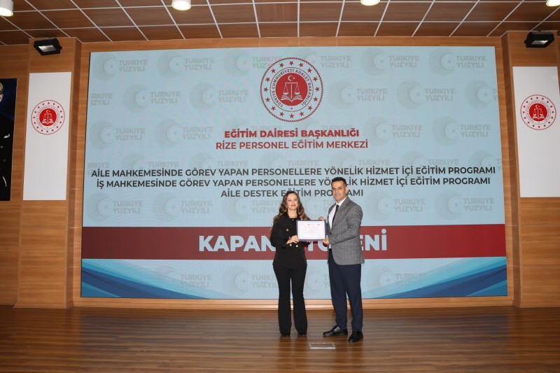 Eğitim Dairesi Başkanlığınca Düzenlenen, 2025 Yılı 14. Grup Aile Destek Eğitim Programı, 12. Grup Aile Mahkemelerinde Görevli Personeller ile 12. Grup İş Mahkemelerinde Görevli Personellere Yönelik Hizmet İçi Eğitim Programları Kapanış Töreni, 24.10.2025 Tarihinde Rize Personel Eğitim Merkezinde Gerçekleştirildi.
