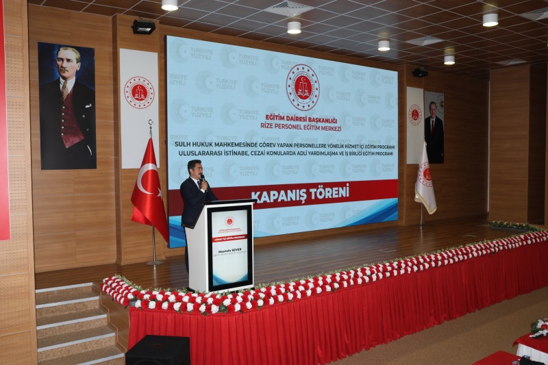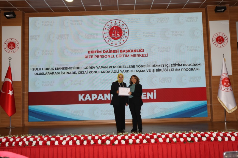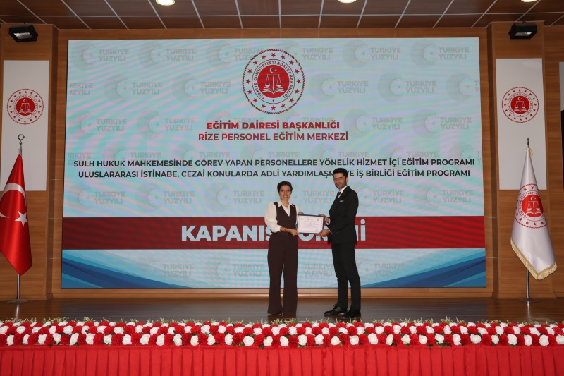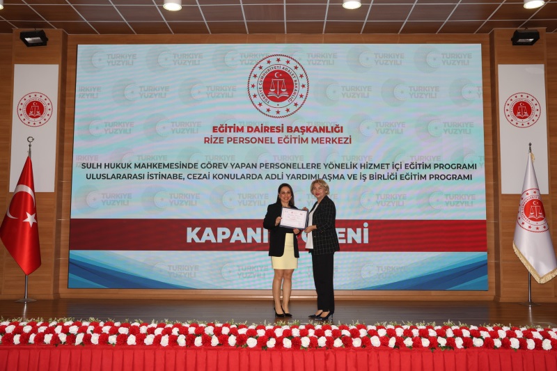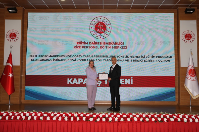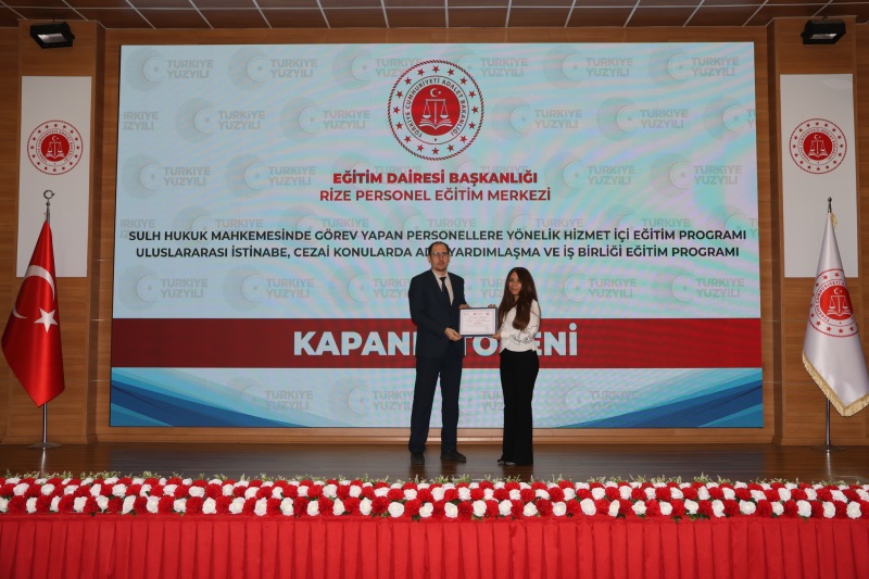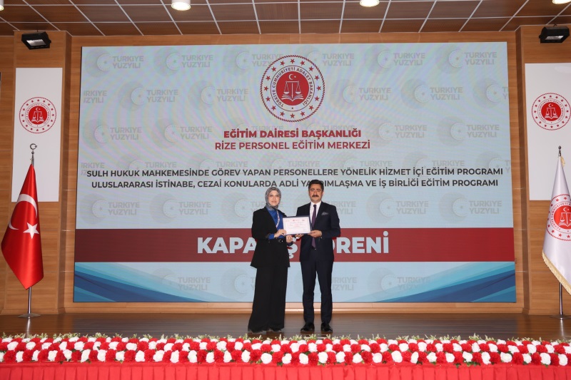 Eğitim Dairesi Başkanlığınca Düzenlenen, 2025 Yılı 10. Grup Uluslararası İstinabe ve Cezai Konularda Adli Yardımlaşma ve İşbirliği ile 4. Grup Sulh Hukuk Mahkemesinde Görev Yapan Personellere Yönelik Hizmet İçi Eğitim Programları Kapanış Töreni, 28.11.2025 Tarihinde Rize Personel Eğitim Merkezinde Gerçekleştirildi.