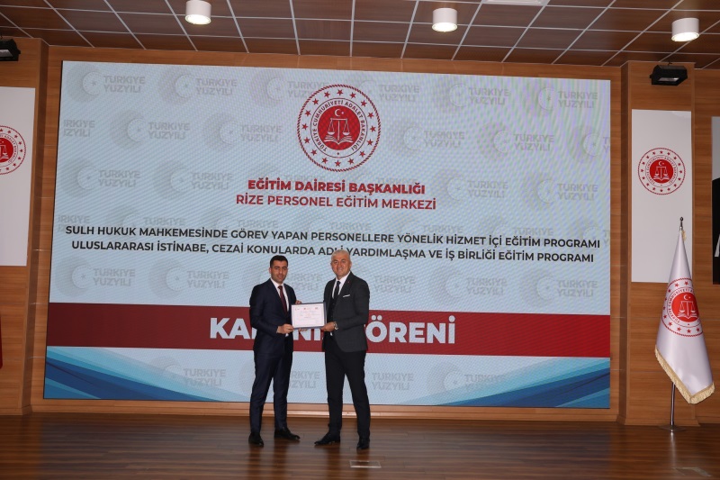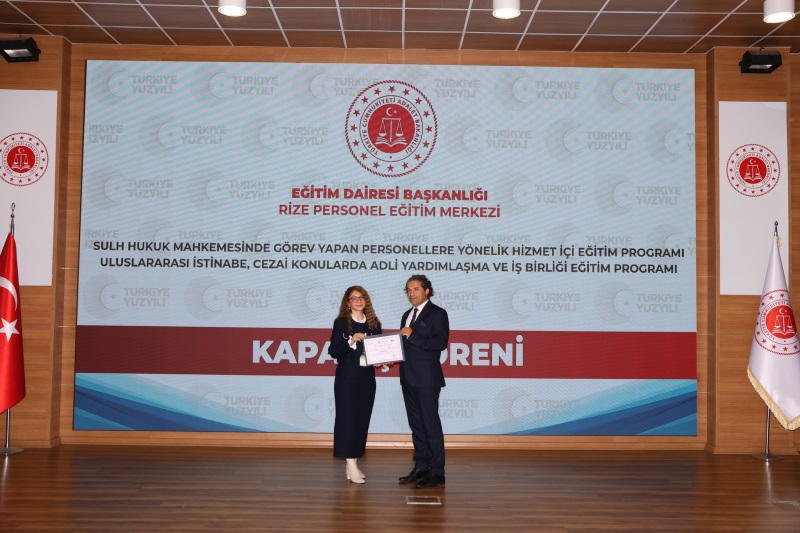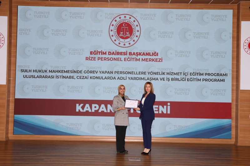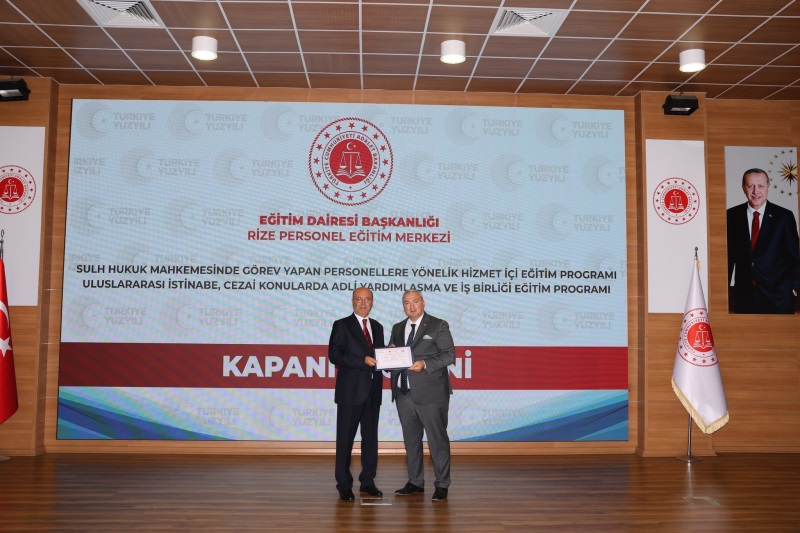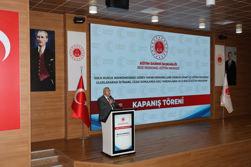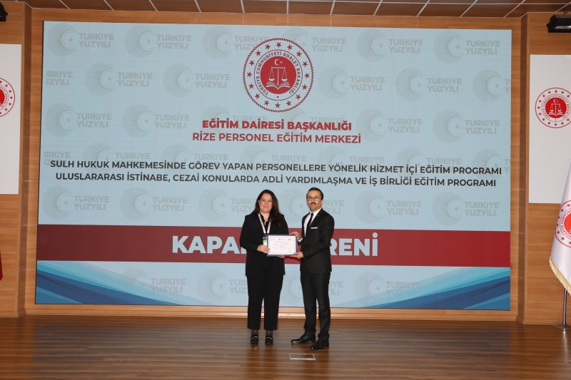 Eğitim Dairesi Başkanlığınca Düzenlenen, 2025 Yılı 8. Grup Uluslararası İstinabe ve Cezai Konularda Adli Yardımlaşma ve İşbirliği ile 2.Grup Sulh Hukuk Mahkemesinde Görev Yapan Personellere Yönelik Hizmet İçi Eğitim Programları Kapanış Töreni, 14.11.2025 Tarihinde Rize Personel Eğitim Merkezinde Gerçekleştirildi.